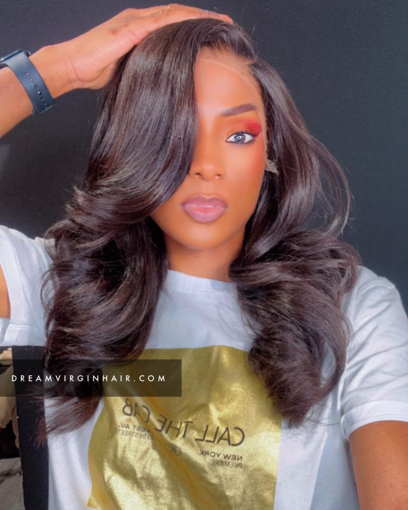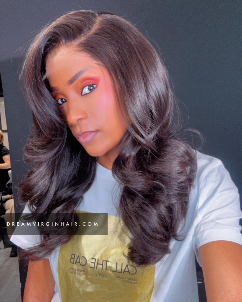 Magnifique perruque Raw Hair single donor (100% human hair de qualité supérieure). Composition : 3 paquets 18″ + Closure Large.