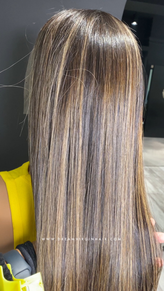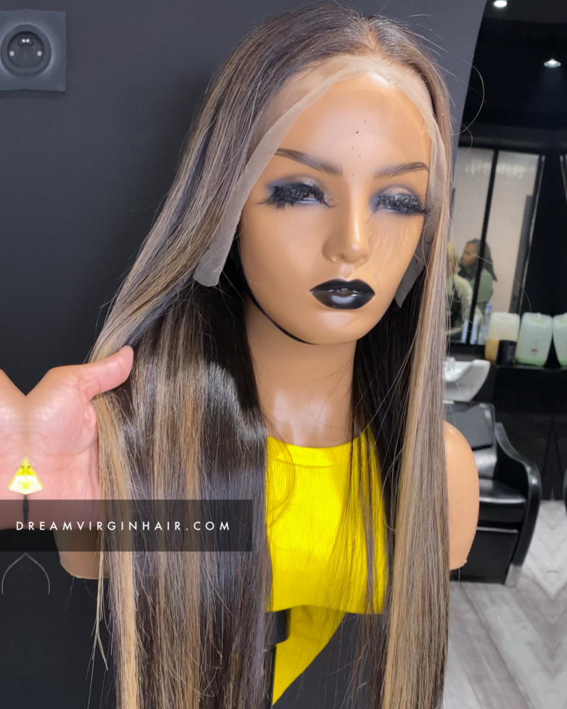 Magnifique perruque lace wig Raw Hair avec une coloration d’exception, balayage blond méché.