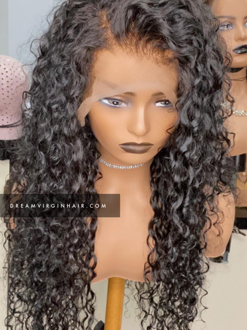 Magnifique perruque bouclée composée de 3 paquets Raw Hair Curly 18″ et lace HD
